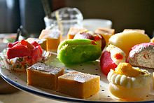 Some Indian desserts from hundreds of varieties. In certain parts of India, these are called mithai or sweets. Sugar and desserts have a long history in India: by about 500 BCE, people in India had developed the technology to produce sugar crystals. In the local language, these crystals were calledkhanda which is the source of the word candy.