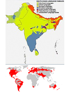 Language families in India and its neighbouring countries. India has 22 official languages – 15 of which areIndo-European. The 2001 census of India found 122 first languages in active use. The second map shows the distribution of the Indo-European languages throughout the world.