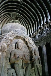 The 5th-century Buddhistvishvakarma cave at Ellora, Maharashtra.