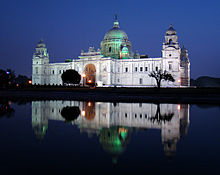 The Victoria Memorial in Kolkatailluminated at night.
