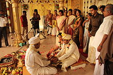 While there are many festival-related rituals in Hinduism, vivaha (wedding) is the most extensive personal ritual an adult Hindu undertakes in his or her life. Typical Hindu families spend significant effort and financial resources to prepare and celebrate weddings. The rituals and process of a Hindu wedding vary depending on region of India, local adaptations, resources of the family and preferences of the bride and the groom. Nevertheless, there are a few key rituals common in Hindu weddings - Kanyadaan,Panigrahana, and Saptapadi; these are respectively, gifting away of daughter by the father, voluntarily holding hand near the fire to signify impending union, and taking seven steps before fire with each step including a set of mutual vows. After the seventh step and vows of Saptapadi, the couple is legally husband and wife. Sikhs get married through a ceremony called Anand Karaj. The couple walk around the holy book, the Guru Granth Sahib four times. Indian Muslims celebrate a traditional Islamic wedding following customs similar to those practiced in the Middle East. The rituals include Nikah, payment of financial dower called Mahr by the groom to the bride, signing of marriage contract, and a reception. Indian Christian weddings follow customs similar to those practiced in the Christian countries in the West.