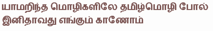 (among all the languages we know, we do not see anywhere, any as sweet as Tamil) was his moving tribute to his mother tongue. That many a Tamil web site carries the words of that song on its home page in cyber space today is a reflection of the hold that those words continue to have on Tamil minds and Tamil hearts. His,